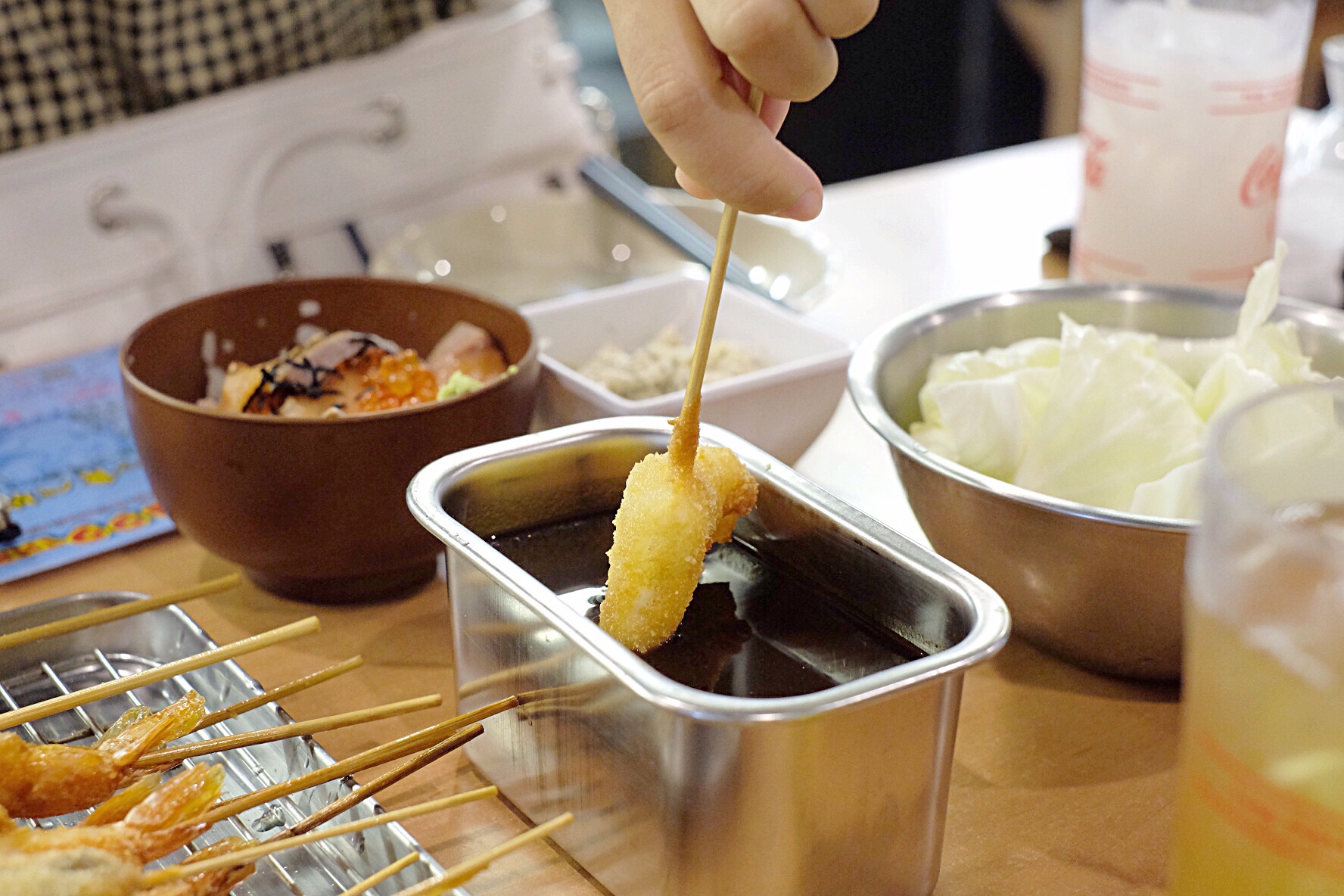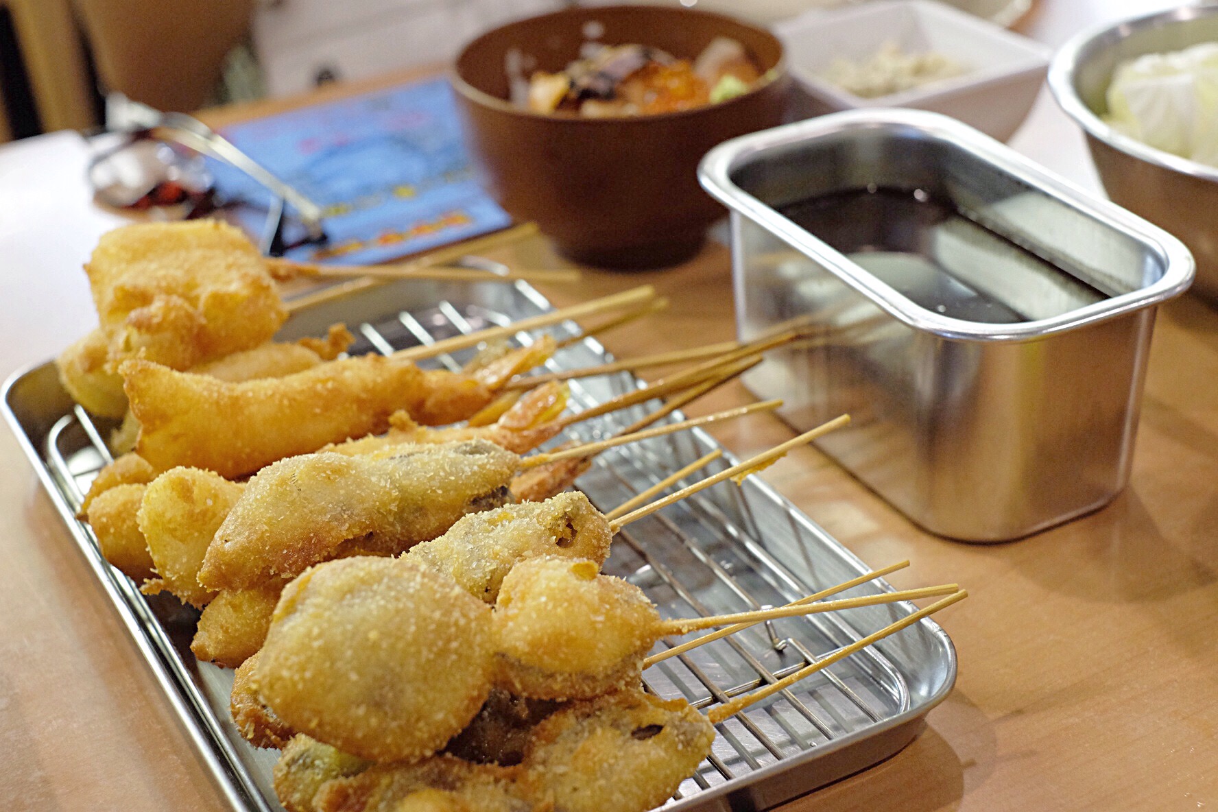 แล้วคุชิคัตสึที่ว่านี่มันคืออะไร ? คุชิคัตสึ ความหมายแบบตรงตัวของมันก็คือเมนูทอดเสียบไม้นั่นเอง หน้าตาของมันก็คือการนำเอาเนื้อสัตว์ เช่น กุ้ง หมู หรือ ไส้กรอก เห็ดชิตาเกะ หอมหัวใหญ่ ไข่นกกระทา ฯลฯ และจุดเด่นของร้าน Kushikatsu Daruma ก็มีความเป็นเอกลักษณ์ที่ตัวแป้งที่ทอดออกมาแล้วกรอบและยังไม่อมน้ำมันทำให้เมื่อนำไปจิ้มกับน้ำจิ้มในปริมาณที่พอดีจะได้รสชาติที่อร่อยมากเลยทีเดียว