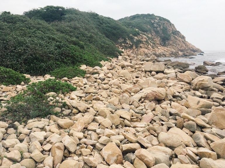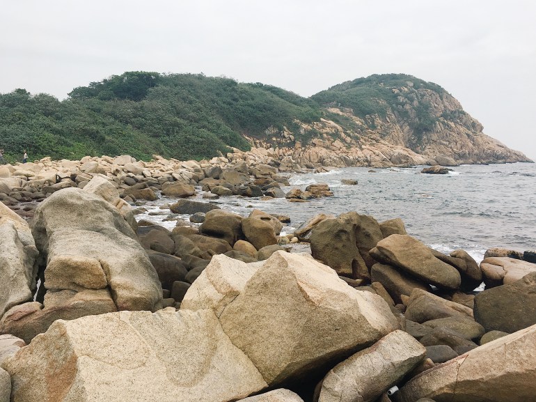เดินตามทาง ตามผู้คนไปเรื่อยๆ แต่ก็ไม่เจอป้ายบอกทางนะว่าที่นั่นไปไหน สรุกไปเจอหาดก้อนหินกลมๆรูปร่างต่างๆเต็มหาด มีจุดขึ้นเขาชมวิว สวยจนร้องโอ้โห้เลยยยย..