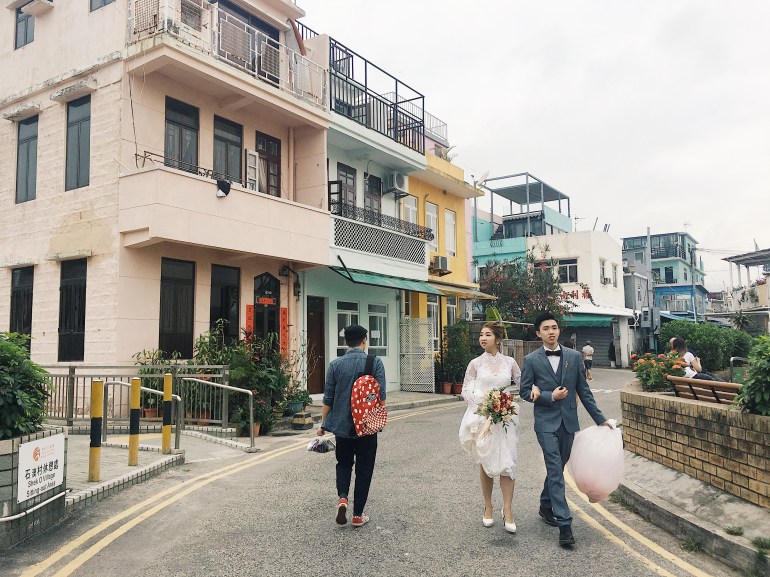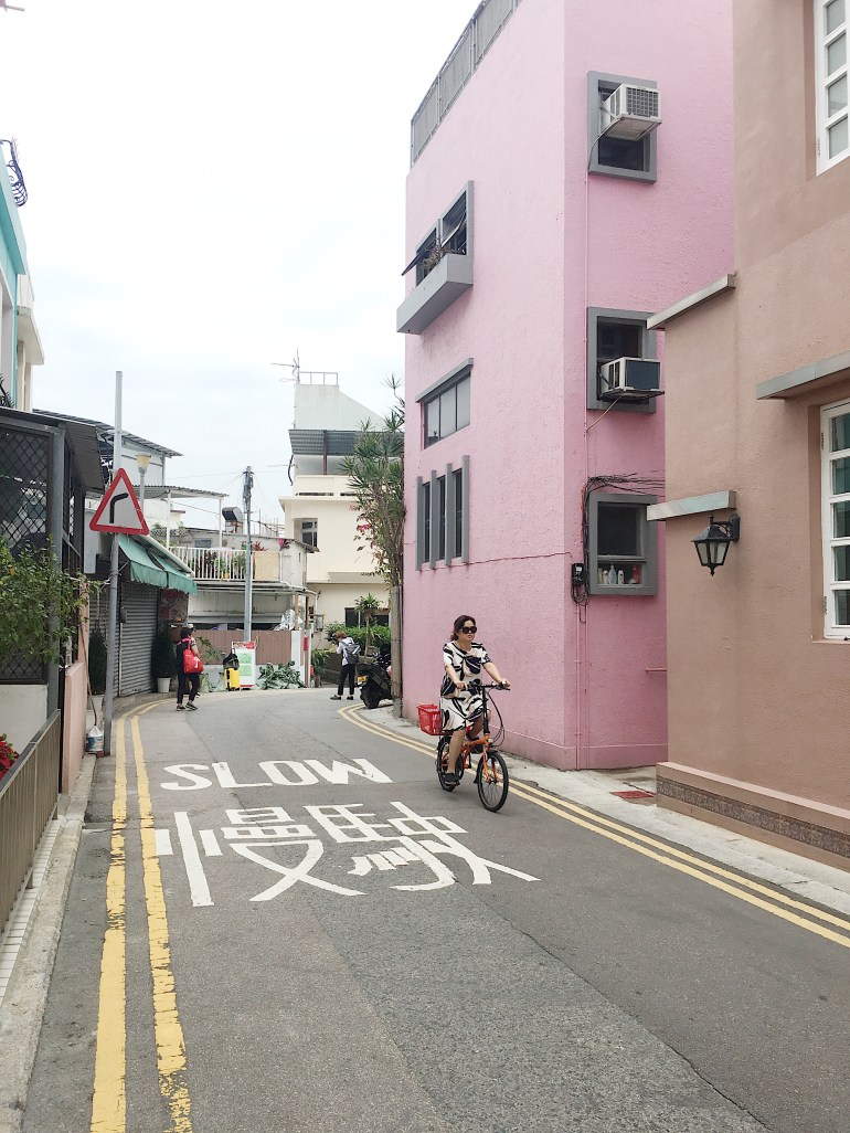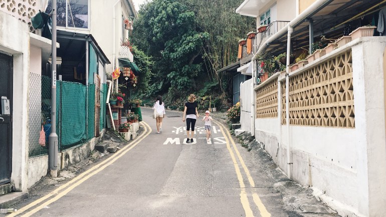เมื่อนั่งรถเมล์มาจุดสุดสายจะเจอหมูบ้านสีพาสเทลน่ารักๆ ความเป็นอยู่แตกต่างจากในตัวเมืองฮ่องกงโดยสินเชิง ในเมืองจะอยู่กันตามตึกใหญ่แออัดหดหู่ บางคนก็อยู่ในตึกหรูหรา แต่ที่นี่ดูเป็นบ้านหลังเล็กๆที่ในบ้านดูอบอุ่นและมีความสุขกว่าในเมือง มันสัมผัสได้แบบนั้นจริงๆนะ ฮี่ๆ