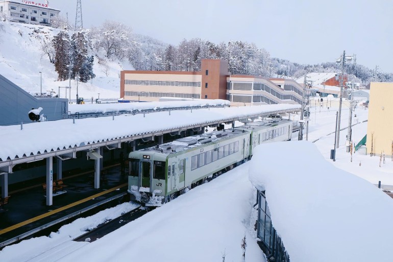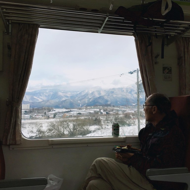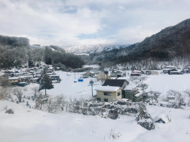 พอนั่งรถไฟจาก Nagano Station แล้วใกล้ถึง Iiyama Station วิวสีขาวเริ่มชัดขึ้น เด่นขึ้นเรื่อยๆจนหัวใจพองโต เพราะมันสวยแบบมากจริงๆ นักท่องเที่ยวก็น้อย อาจจะเจอคนญี่ปุ่นและฝรั่งที่จะไปเล่นสกีอยู่บ้างนิดหน่อย ให้ความรู้สึกเมืองหิมะแห่งนี้เป็นของเรา