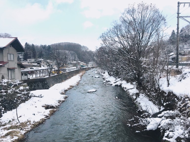วิวริมแม่น้ำที่อยุไม่ไกลจากสถานี Iiyama คือเดอะเบสท์มากที่สุด เราใช้วิธีเดินตาม Google Map ไปสดๆ เพราะเราคิดว่าไม่ว่าจะฤดูไหนวิวริมแม่น้ำคือรางวัลของเรา